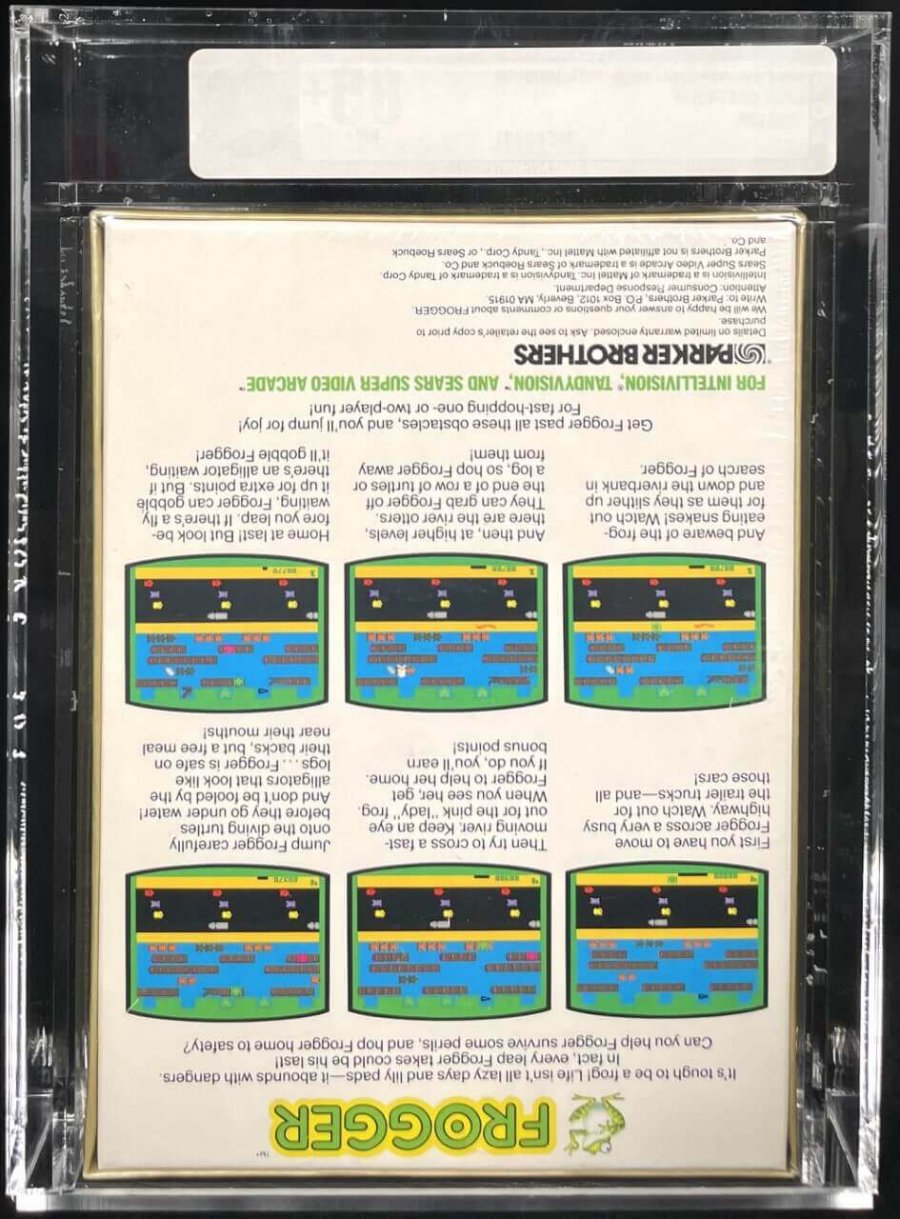 85+; NM+; #74560931; 1982It's tough to be a frog! Life isn't all lazy days and lily pads --it abounds with dangers. In fact, every leap Frogger takes could be his last! Can you help Frogger survive some perils, and hop Frogger home to safety?