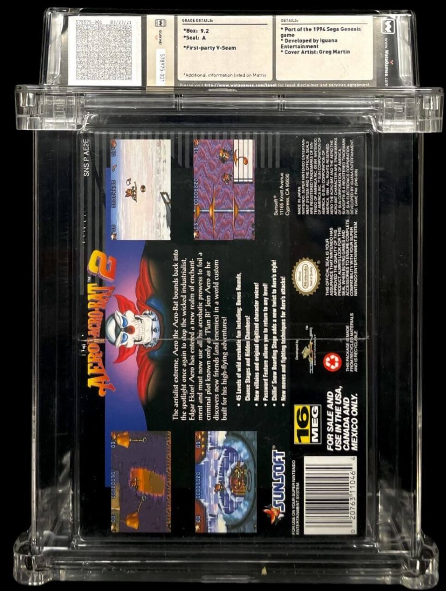 Port of the 1994 Sega Genesis game; Developed by Iguana Entertainment; Cover Artist: Greg MartinThe aerialist extreme, Aero the Acro-Bat bounds back into the spotlight once again to stop the wicked industrialist, Edgar Ektor! Aero has entered a new realm of enchantment and must now use all his acrobatic prowess to foil a criminal plot known only as "Plan B!" Join Aero as he discovers new friend(and enemies) in a world custom built for his high-flying adventures!