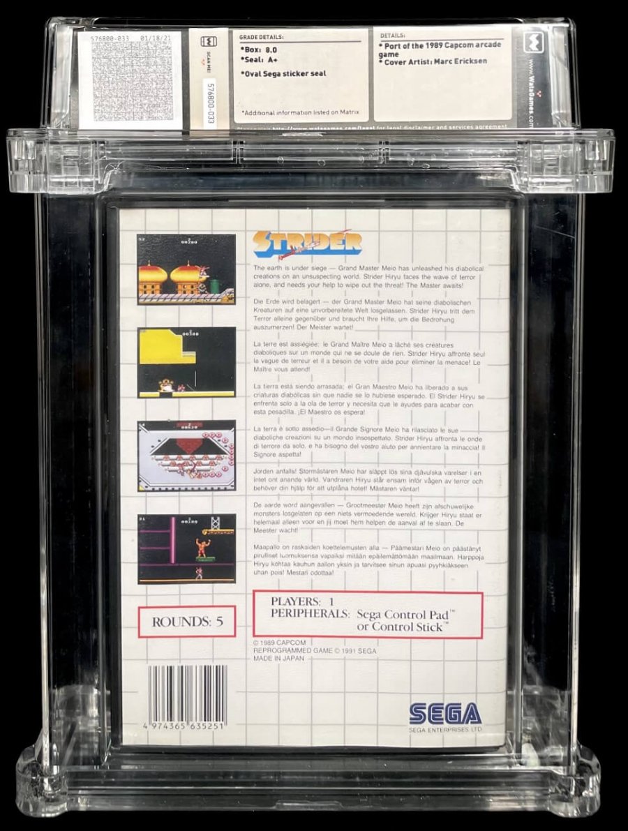 B+ Seal Rating; Oval Sega Sticker Seal; Tape on Hangtab; Sega; Made in Japan; European Version.