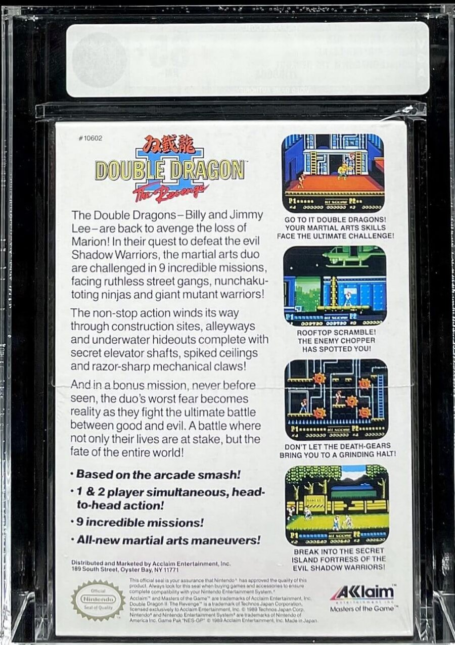 Cover Artist: Kazumi Kakizaki; Music composed by Kazunaka Yamane; Designed by Yoshihisa Kishimoto.The Double Dragons - Billy and Jimmy Lee - are back to avenge the loss of Marion! In their quest to defeat the evil Shadow Warriors, the martial arts duo are challenged in 9 incredible missions, facing ruthless street gangs, nunchaku-toting ninjas and giant mutant warriors. The non-stop action winds its way through construction sires, alleyways, and underwater hideouts complete with secret elevator shafts, spiked ceilings and razor-sharp mechanical claws! And in a bonus mission, never before seen, the duo's worst fear becomes reality as they fight the ultimate battle between good and evil. A battle where not only their lives are at stake, but the fate of the entire world.
