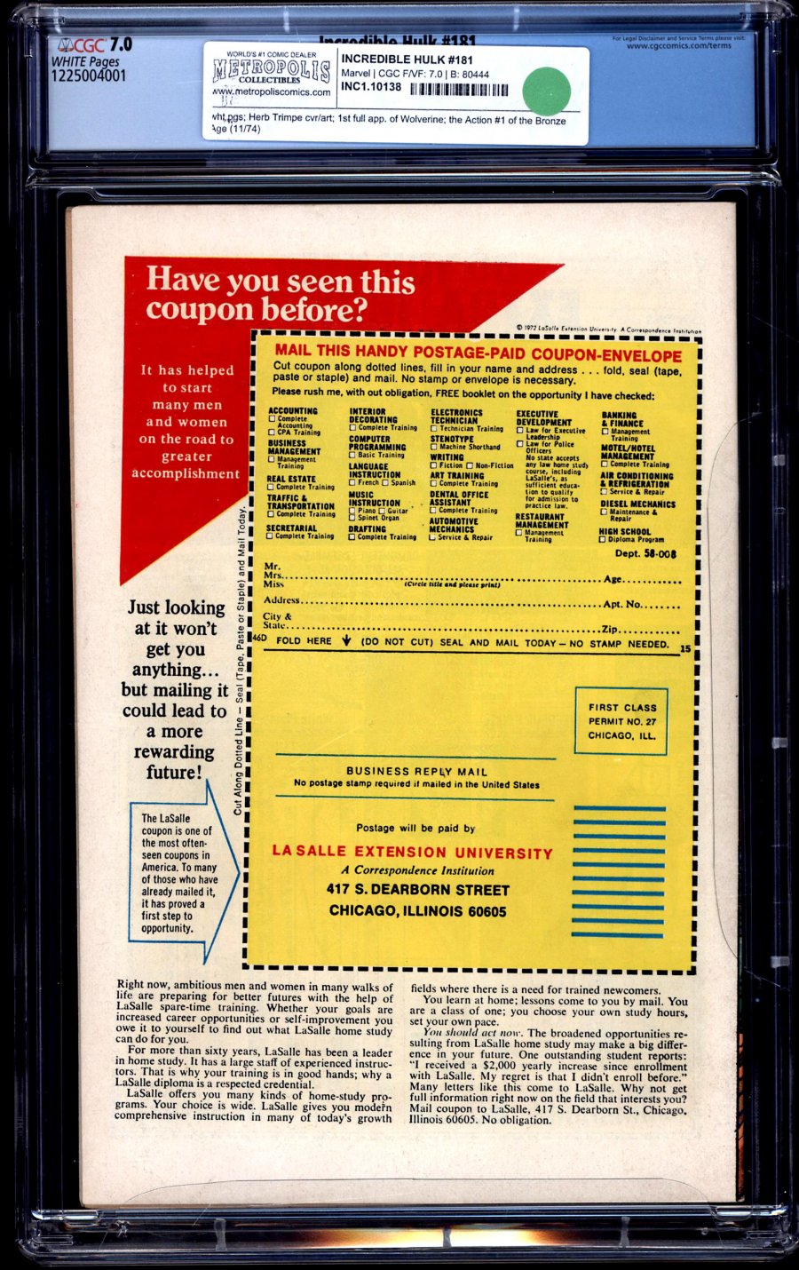 Incredible Hulk #181 became the first Bronze Age book to break the $100,000 sales mark.