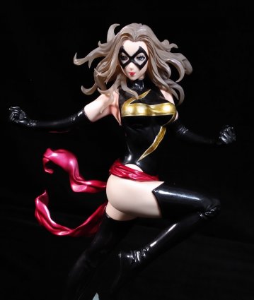 COMMENTS: Ms. Marvel; Marvel Bishoujo Statue; Craftmanship Kotobukiya; NO BOX, scuff on hair, chip on fists (easily covered with included fiery fist pieces), some faded color on lightning bolt and sash