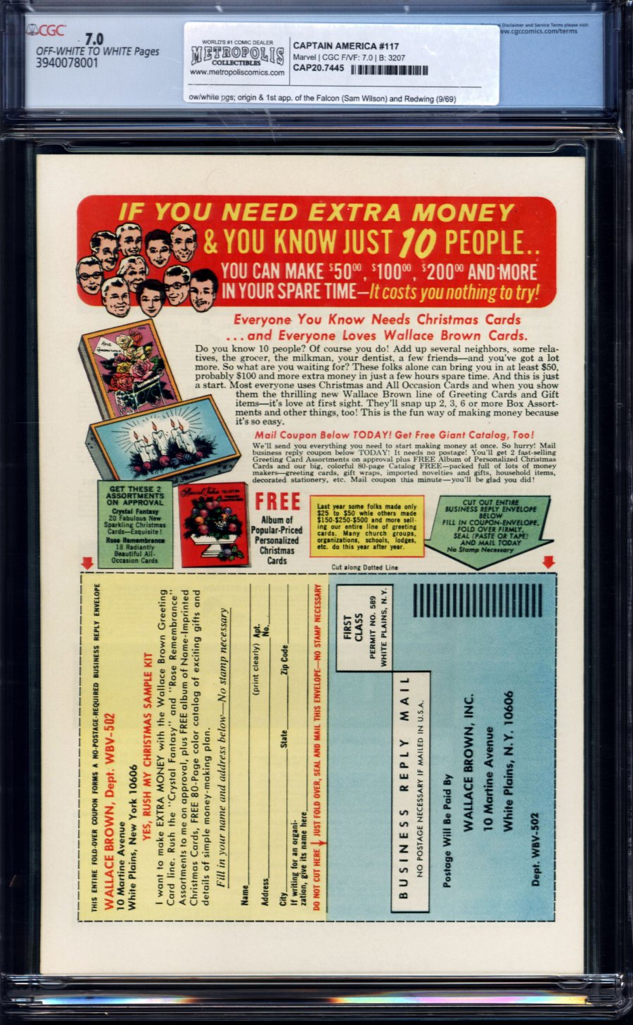 UNDERVALUED KEY ALERT; Origin/1st app of the Falcon (Sam Wilson) & Redwing; Colan/Romita cover/art; COMIC BOOK IMPACT rating of 8 (CBI)Marvel had always been at the forefront of American popular culture, daring to stake out territory otherwise considered taboo or too controversial, as when Stan Lee published a pair of Spider-Man issues without the comics code stamp due to anti-drug imagery. The Black Panther had already broken down barriers as the first Black superhero appearing in a mainstream title, and there had been characters of color in comics previously, of course, but they had either been wince-inducing caricatures, or punted off into "racial" titles meant solely for an inner-city readership segregated from the mainstream. But, by the late 1960s, audiences were ready for a change, and Lee, along with the supremely gifted Gene Colan, developed a character designed to stand on his own as an urban Black hero, sans gimmicks, and paired him with the personification of America itself, Captain America. The result was this instant success, an acknowledged breakthrough in hero comics, which introduced the Falcon, a tough and determined former social worker (though this was later retconned) who proves a formidable ally for our titular hero.