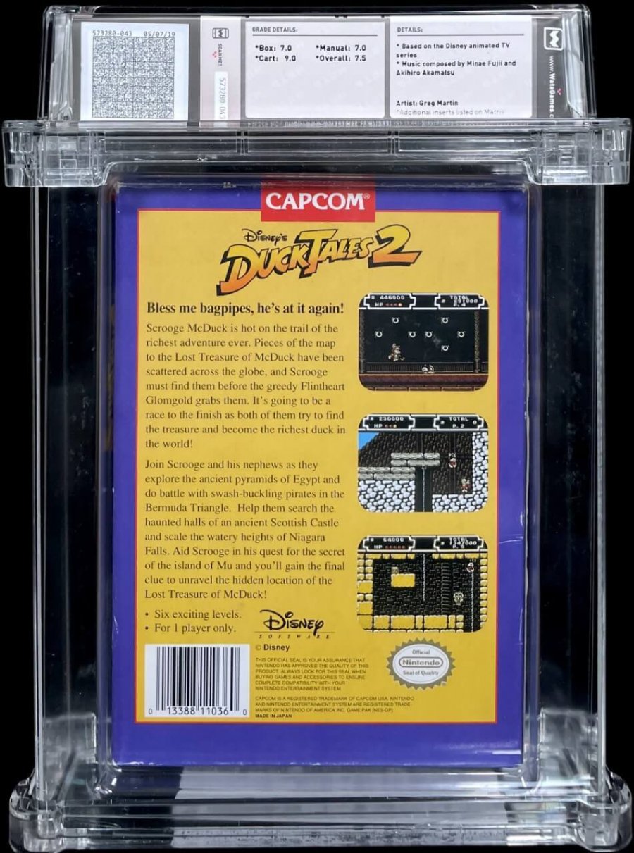 Music Compsed by Minae Fujii & Akihiro AkamatsuBless me bagpipes, he 's at it again! Scrooge McDuck is hot on the trail of the richest adventure ever. Pieces of the map to the Lost Treasure of McDuck have been scattered across the globe, and Scrooge must find them before the greedy Flintheart Glomgold grabs them. It's going to be a race to the finish as both of them try to find the treasure and become the richest duck in the world! Join Scrooge and his nephews as they explore the ancient pyramids of Egypt and do battle with swash-buckling pirates in the Bermuda Triangle. Help the search the haunted hills of an ancient Scottish Castle and scale the watery heights of Niagara Falls. Aid Scrooge in his quest for the secret of the island of Mu and you'll gain the final clue to unravel the hidden location of the Lost Treasure of McDuck.Box: Rev-A; Oval SOQ R