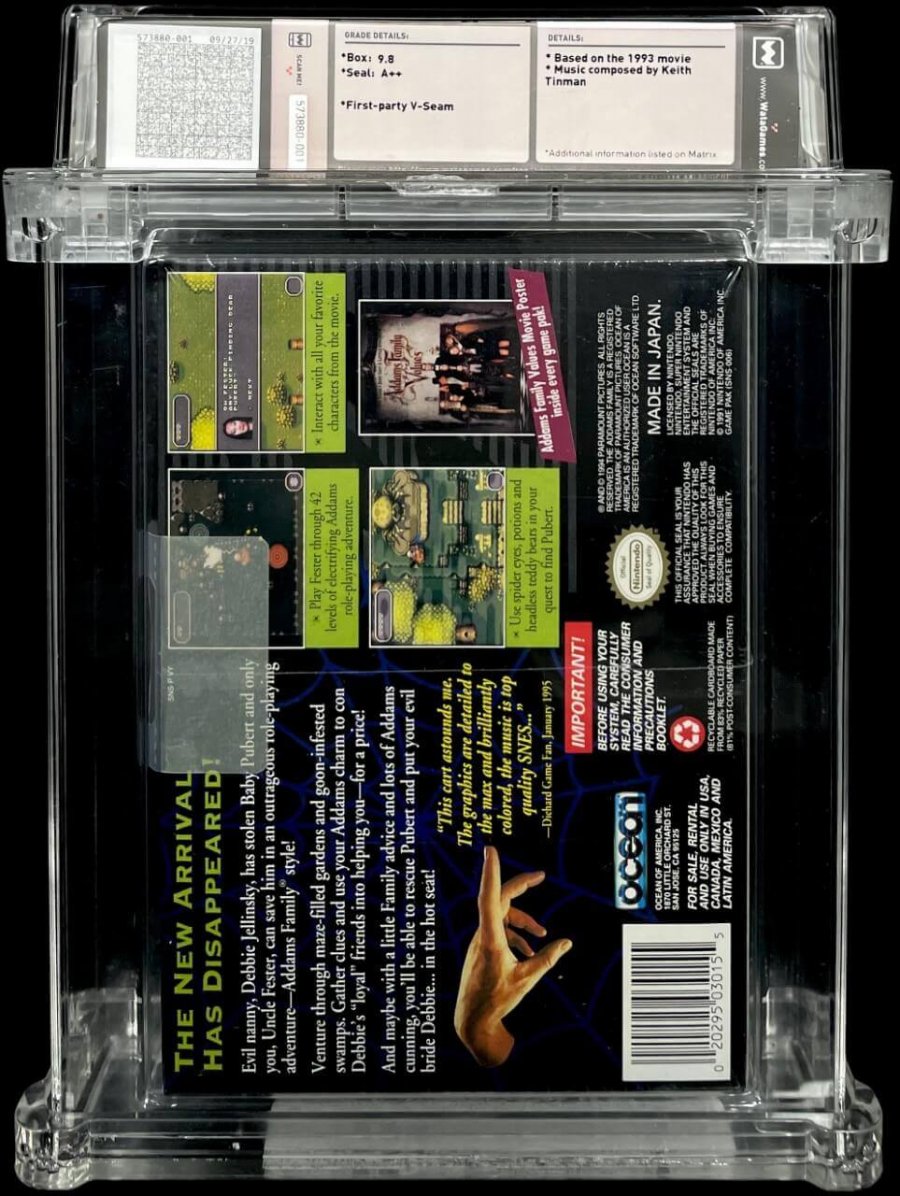 Based on the 1993 movie; Music composed by Keith TinmanThe new arrival has disappeared! Evil nanny, Debbie Jellinsky, has stolen baby Pubert and only you, Uncle Fester, can save him in an outrageous role-playing adventure - Addams Family style! Venture through maze-filled gardens and goon-infested swamps. Gather clues and use your Addams charm to con Debbie's "loyal" friends into helping you - for a price! And maybe with a little Family advice and lots of Addams cunning, you'll be able to rescue Pubert and put your evil bride Debbie...in the hot seat!
