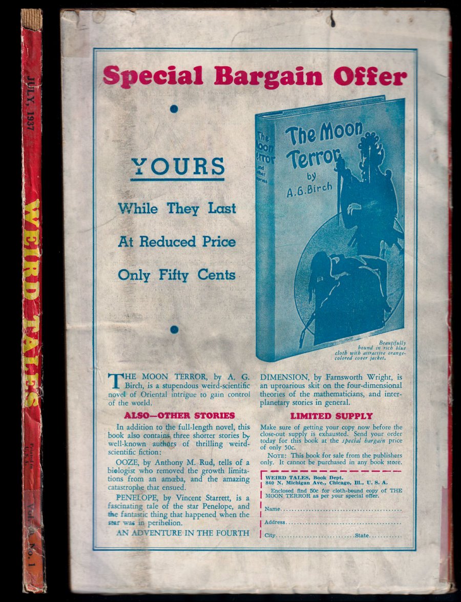 Bloch story; June, 1937; Brundage cover; PULP IMPACT rating of 6 (PI)