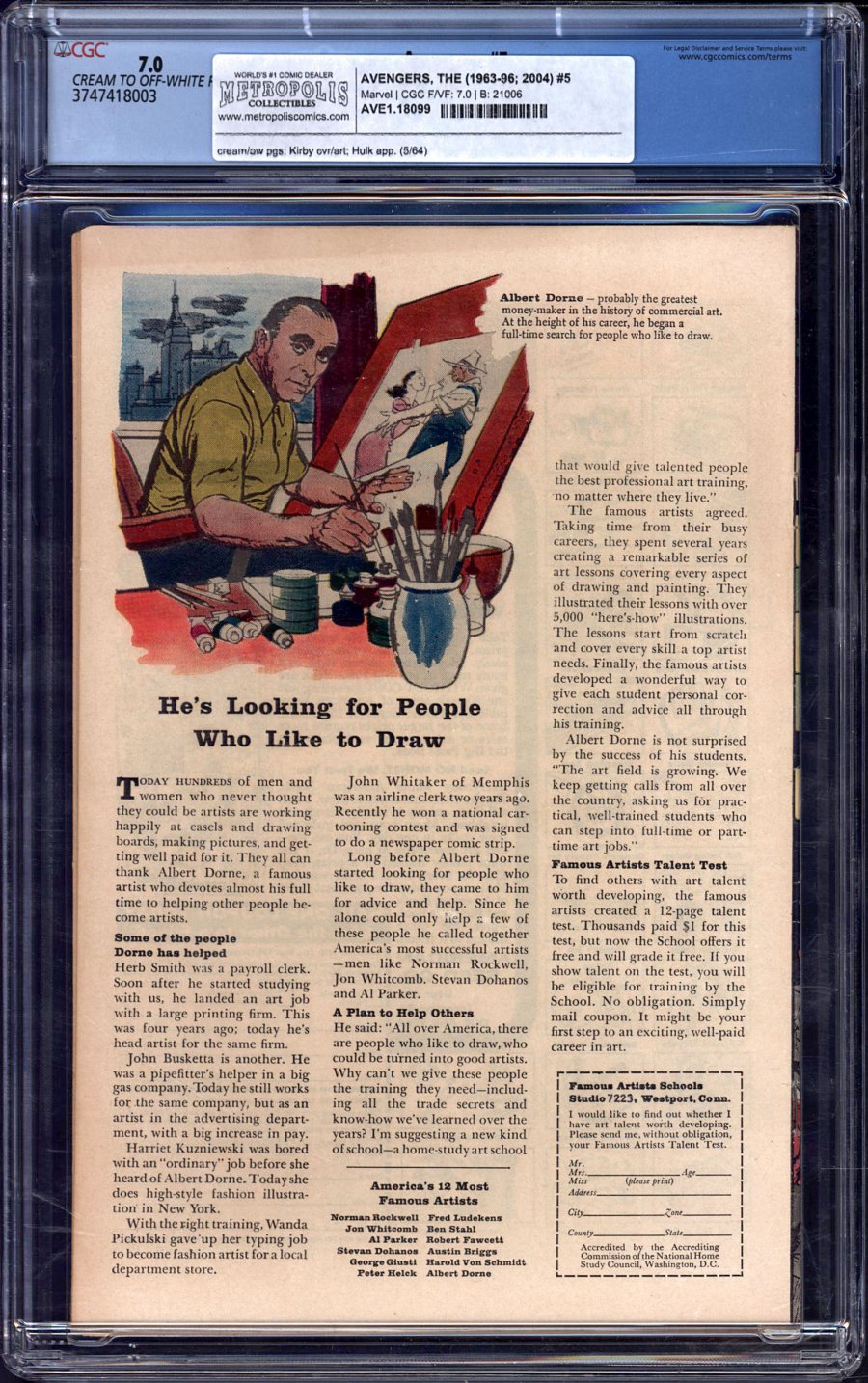 Kirby cvr; fan letter from artist Alan Weiss (asks Marvel to have Sub-Mariner become a hero) (5/64) COMIC BOOK IMPACT rating of 7 (CBI)Hulk and Lava Men app, 1st Fan Letter page