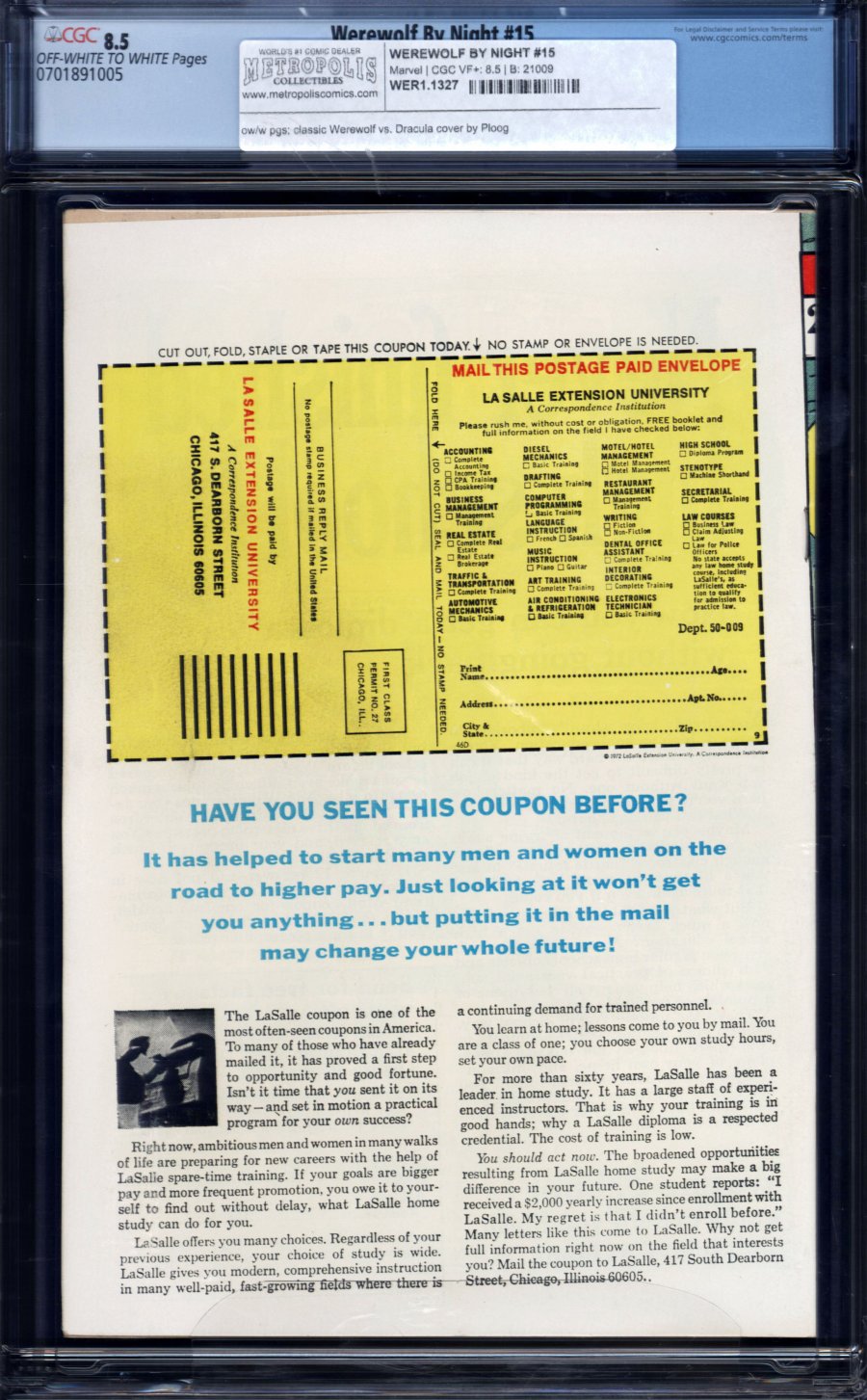 classic Werewolf vs. Dracula cover by Ploog; COMIC BOOK IMPACT rating of 6 (CBI)