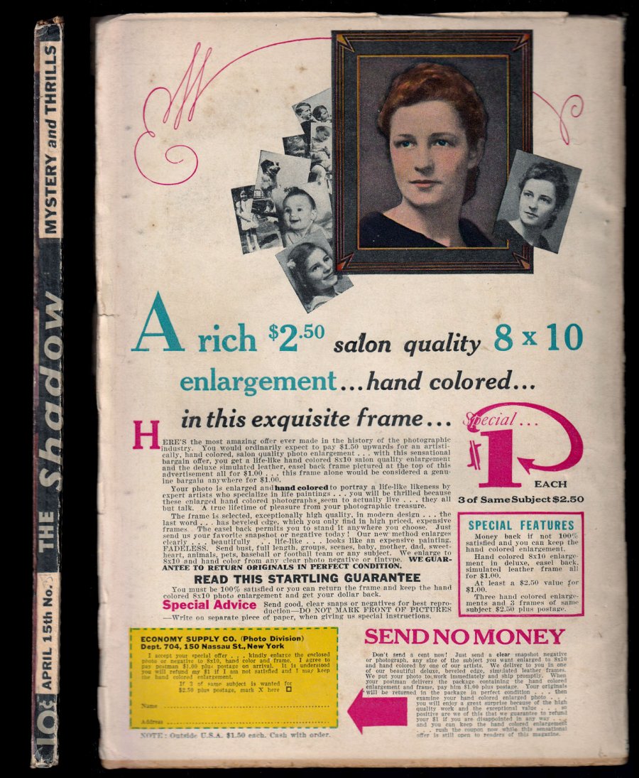 March 1, 1940. 3rd appearance of Shiwan Khan. Stories include "The Invincible Shiwan Khan" by Maxwell Grant and "Only Death Shall Pass" by Stephen Gould plus the column "Codes" by Henry Lysing. Edd Cartier illustrations.