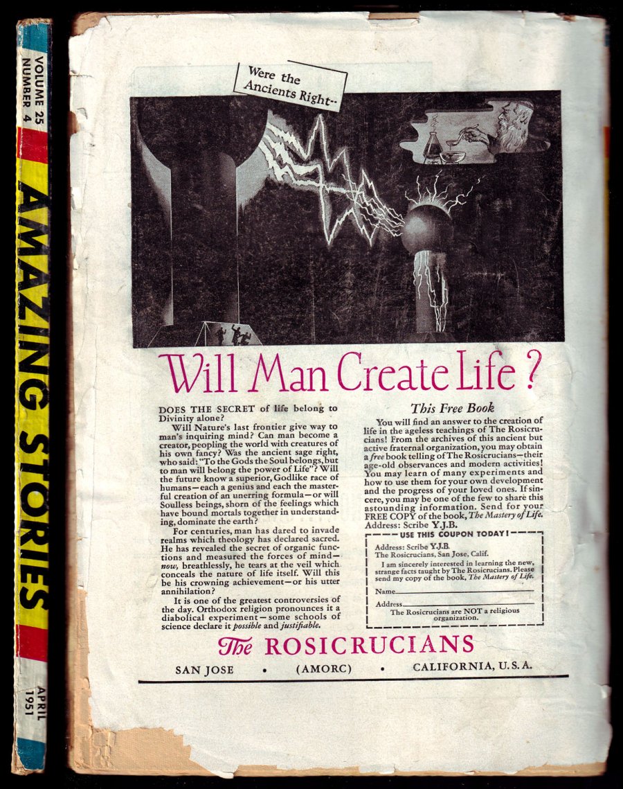April, 1951. Cover by Robert Gibson Jones. Science fiction stories by Isaac Asimov, Robert Moore Williams, E.K. Jarvis, Clee Garson, Kendall Foster Crossen, Charles Creighton, and H.B. Hickey. Illustrations by Ogden Whitney, Enoch Sharp, James Settles, He