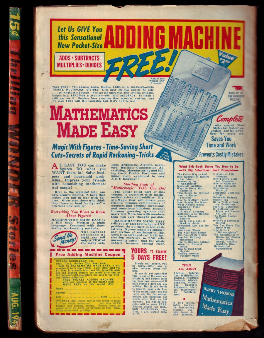 August 1941; monster cover by Rudolph Belarski; stories by Edmond Hamilton, Manly Wade Wellman, John Broome, Virgil Finlay interior illustrations"Son of Two Worlds" story by Edmond Hamilton (Golden Age DC comics writer); "Space Chore" story by Manly Wade Wellman (ghostwriter on Will Eisner's The Spirit); "Masters of Chance" story by William Morrison; "Appointment in Space" story by John Broome (creator of the Silver Age Flash (Barry Allen) and Green Lantern (Hal Jordan) at DC); "In the Ancient Way" story by Harry Walton; "Time-Table for Earth" story by C.P. Mason; "Pettigrew Lives Again" story by Don Tracy