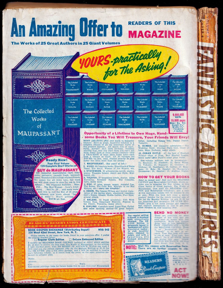June 1942. Harryhausen-esque scg-fi cover by Malcolm Smith. Stories by William P. McGivern & David Wright O'Brien -as (Gerald Vance & Bruce Dennis) "The Giant from Jupiter", David Wright O'Brien (as "Duncan Farnsworth"), Stanton A. Coblentz, David Wright