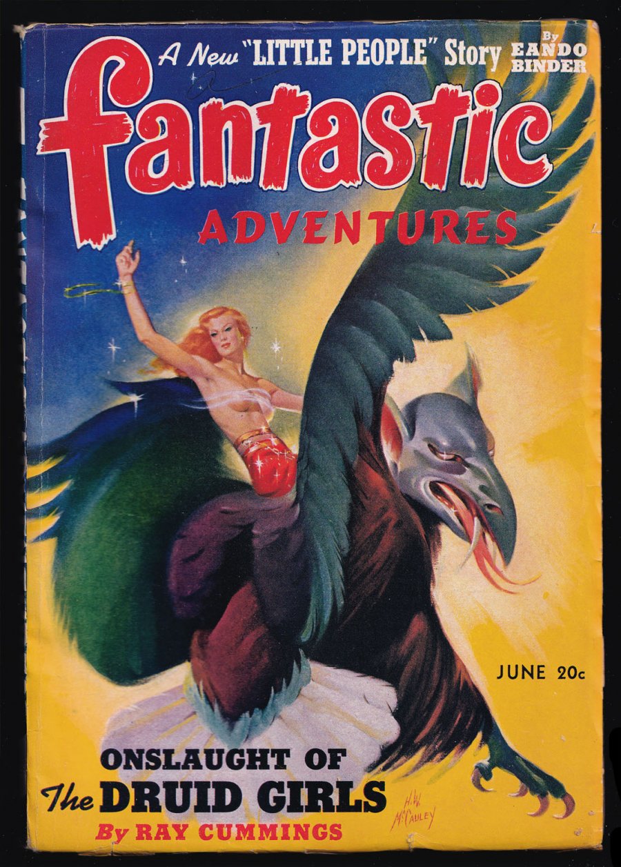 June, 1941. Cover by Harold W. McCauley. Science Fiction and Adventures magazine. Features a new"Little People" story by Eando Binder, and "the Onlsaught of the Druid Girls" by Ray Cummings. Softcover Pulp, 7-in x 9 1/2-in, 146 Pages, B&W. Cover price $0.