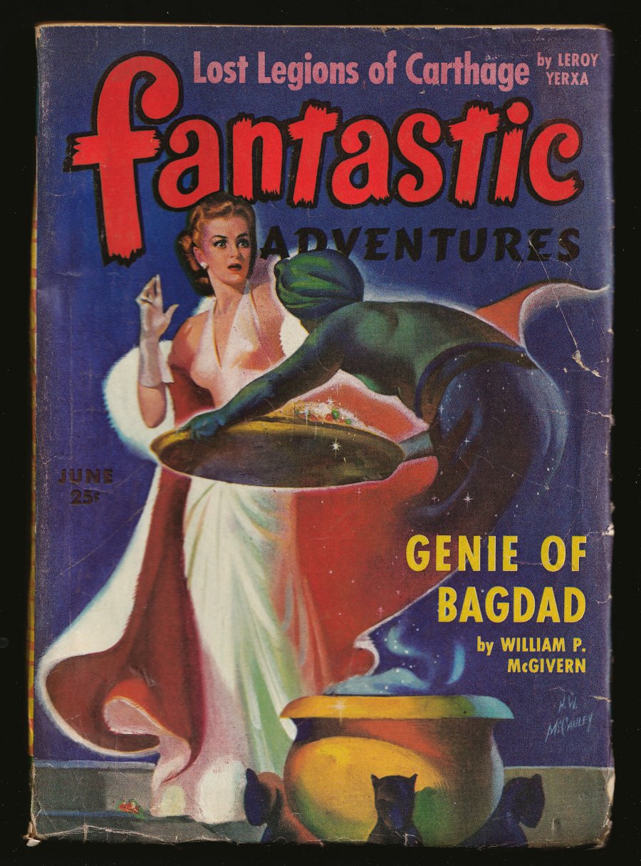 June 1943. genie cover by Harold W. McCauley. Science Fiction and Adventures stories. This issue features "Genie of Bagdad" by William P. McGivern, and "Lost Legions of Carthage" by Leroy Yerxa. Softcover Pulp, 7-in x 10-in, 212 Pages, B&W. Cover price $.
