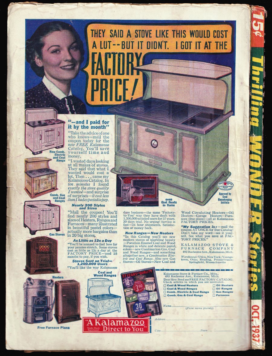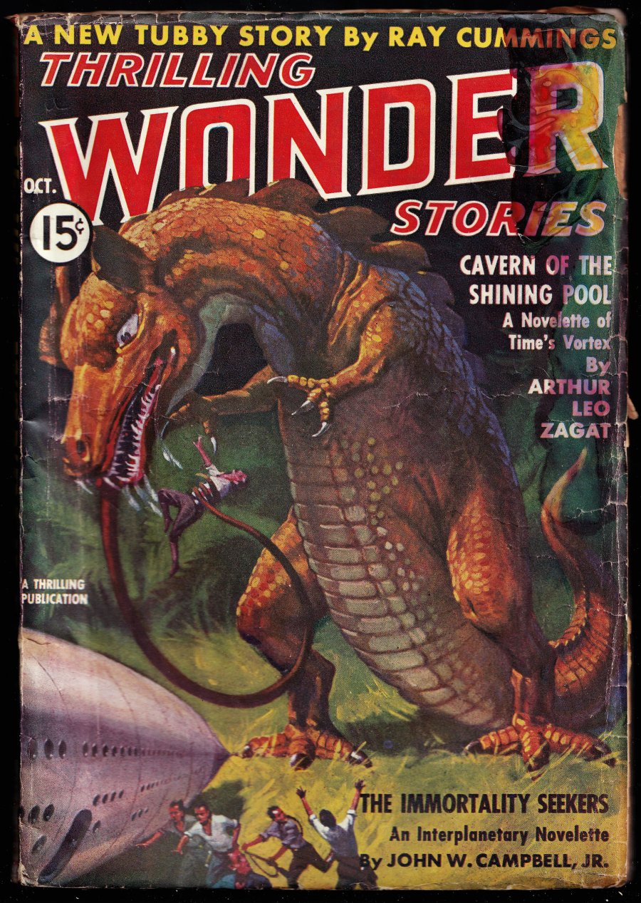 Oct 1937. Stories by Arthur Leo Zagat, John W. Campbell Jr., Ray Cummings, Arthur K. Barnes, Eando Binder, Edmond Hamilton, Gordon A. Giles, and Henry Kuttner. "Zarnak" comic story by Max Plaisted.
