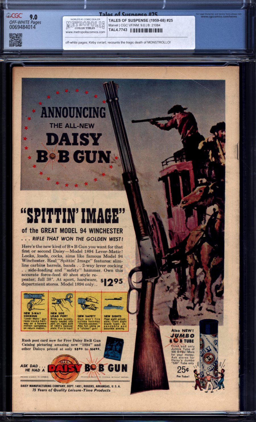 Kirby cvr/art; last 10c issue; recounts the tragic death of MONSTROLLO!; COMIC BOOK IMPACT rating of 6 (CBI)
