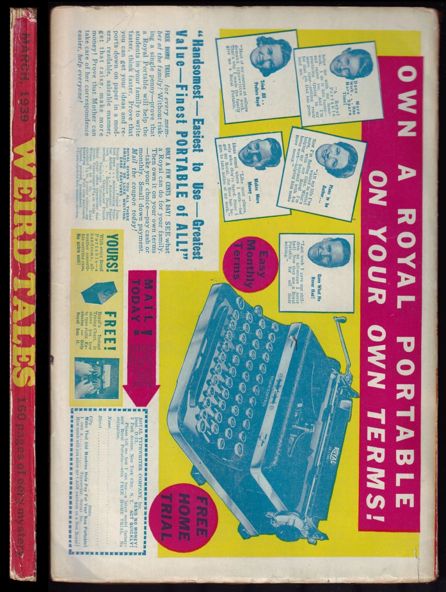 March, 1939. "The Quest of Iranon" by Lovecraft, Howard verse + Finlay cover; PULP IMPACT rating of 5 (PI)