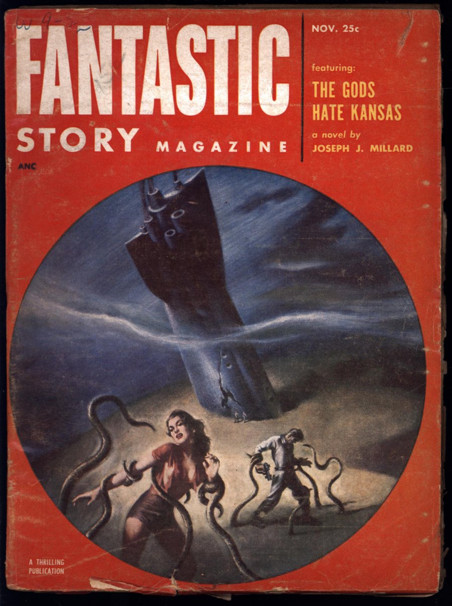 Nov 1952. Cover by Earle K. Bergey. Stories by Joseph J. Millard, Kendall Foster Crossen, Robert Donald Locke, Rog Phillips, Alan E. Nourse, Paul Lawrence Payne, and Walter M. Miller. Virgil Finlay (2) and Alex Schomburg illustrations. 7-in. x 9.75-in.; b