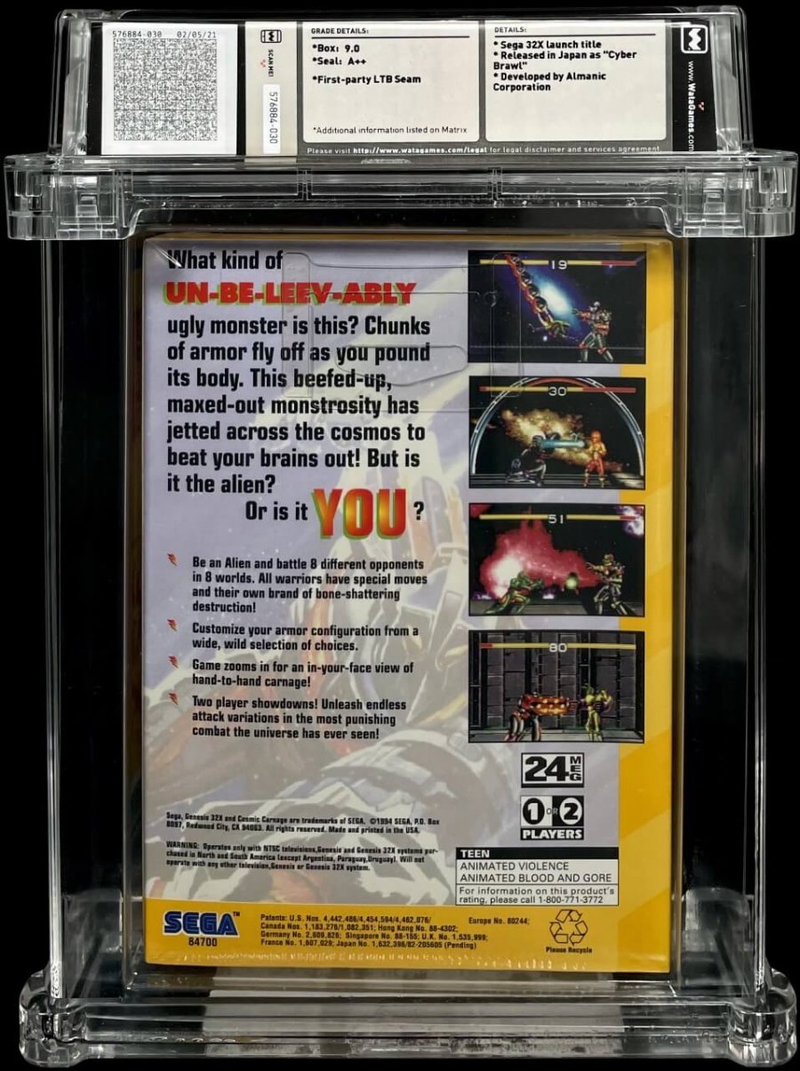 Sega 32X launch title; Released in Japan as "Cyber Brawl"; Developed by Almanac CorporationWhat kind of UN-BE-LEEV-ABLY ugly monster is this? Chunks of armor fly off as you pound its body. This beefed-up, maxed-out monstrosity has jetted across the cosmos to beat your brains out! But is it the alien? Or is it you?