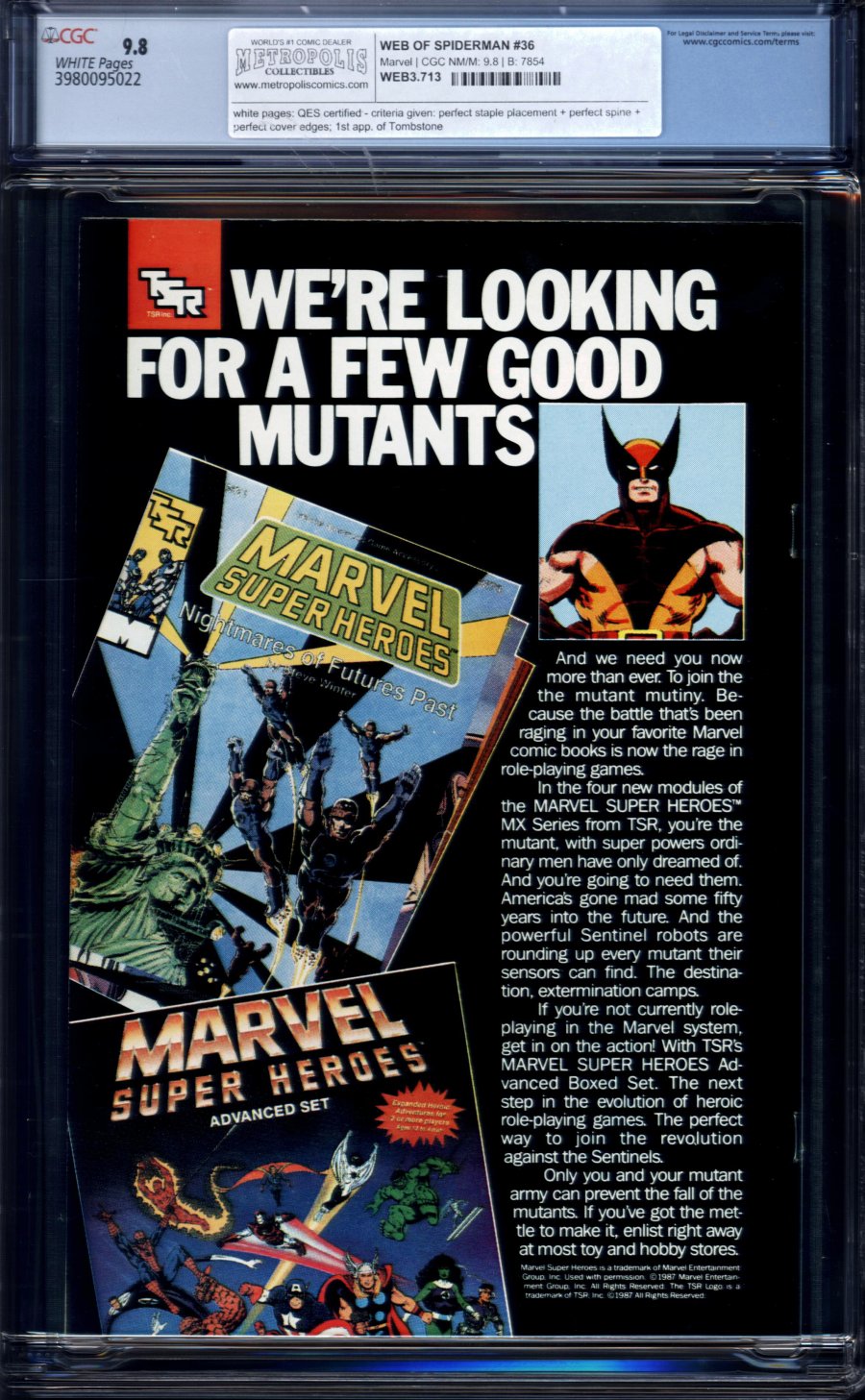 1st app. of Tombstone"Phreak-Out!" Story by Gerry Conway. Art by Alex Saviuk and Keith Williams. The young scientist from the previous issue is still on the loose, and now he has built his own powerful exo-skeleton. The Phreak goes to Peter Parker's apartment and abducts Mary Jane; setting the stage for a showdown with Spider-Man over Times Square! Meanwhile, Joe Robertson is horrified to see a chilling old acquaintance and a soon-to-be new villain for Spider-Man. First appearance of Tombstone.