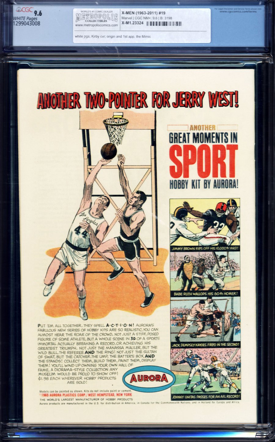 Jack Kirby cover; 1st app & origin of Mimic (Calvin Rankin) COMIC BOOK IMPACT rating of 6 (CBI)In this issue the X-Men encounter a new villain, the Mimic, a bad guy with the ability to copy the powers of any hero he is in the vicinity of, stumbling into the path of several mutants, the Mimic follows Jean Grey back to headquarters where he attempts to overpower the mutants. This battle eventually leads to the Mimic's underground lair, where he is trying to unearth a machine that will make his temporary powers permanent. He is eventually thwarted, his mind is wiped by Professor X, and he is sent off with a new lease on life. Art by Kirby, Jay Gavin, and Dick Ayers.