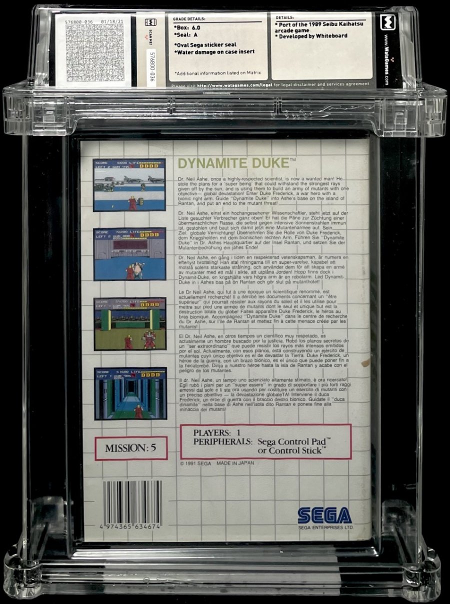 A Seal Rating; European Version; Oval Sega sticker seal; Water damage on case insert; Sega; Made in Japan;