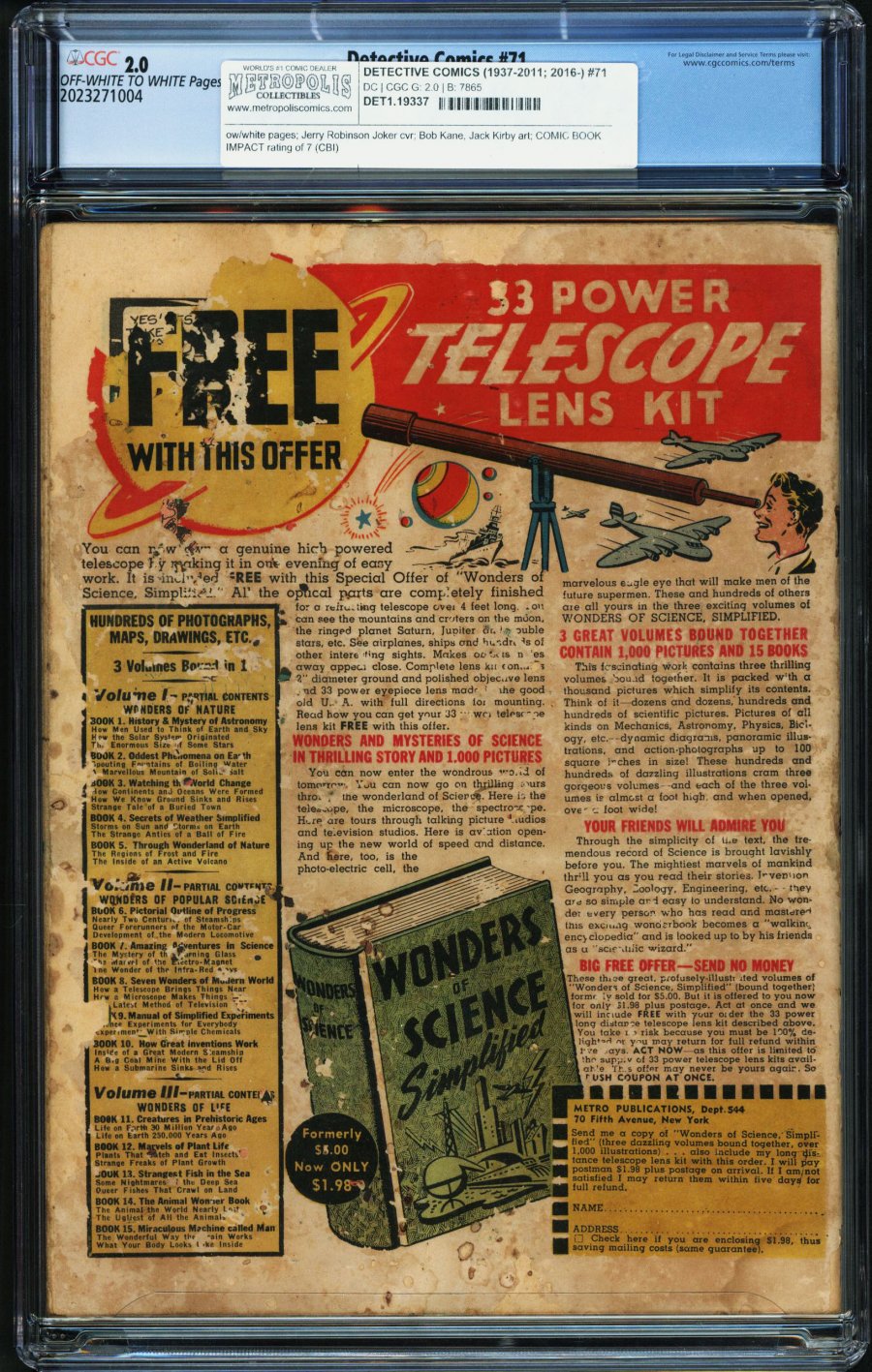 Jerry Robinson Joker cvr; Bob Kane, Jack Kirby art; COMIC BOOK IMPACT rating of 7 (CBI)