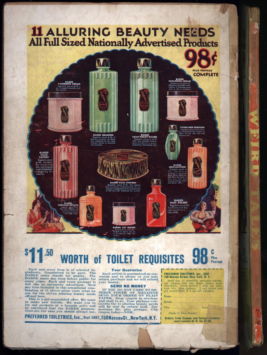 February, 1933; Classic St. John cover - woman trapped in giant web, hero fights giant scorpion; "The Cats of Ulthar" - Lovecraft reprint from early Weird Tales