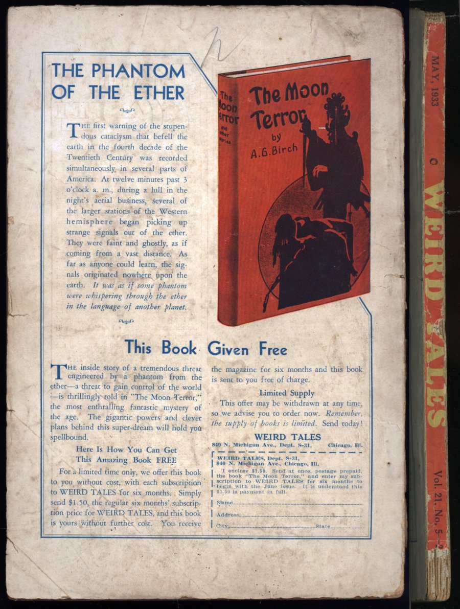 May, 1933; St. John cover, Robert E Howard verse; PULP IMPACT rating of 6 (PI)