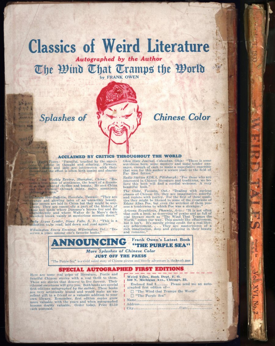 August, 1930; Rankin serpent cover; "The Hills of the Dead" by Robert E. Howard (Solomon Kane)