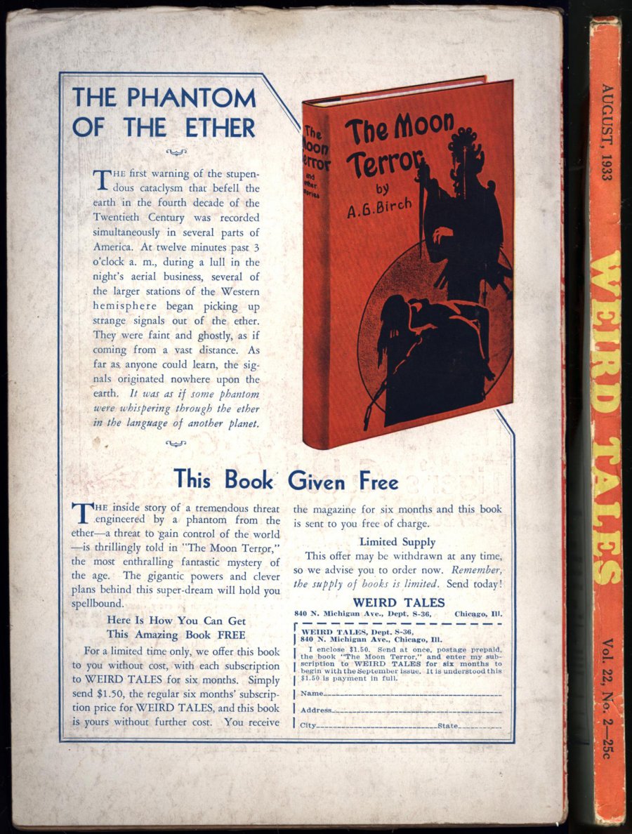 August, 1933; Margaret Brundage bondage cover; Quinn, Ward, Derleth, Whitehead, Jacobi; PULP IMPACT rating of 7 (PI)