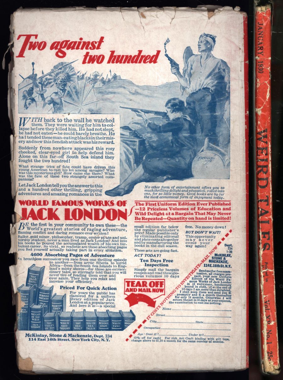 January, 1930; Senf bondage/torture cover; Howard verse; PULP IMPACT rating of 6 (PI)
