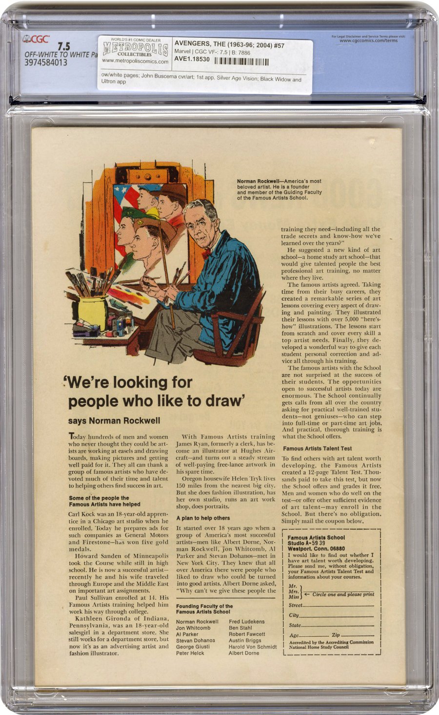 1st app of Silver Age Vision; Black Widow and Ultron app. COMIC BOOK IMPACT rating of 8 (CBI)