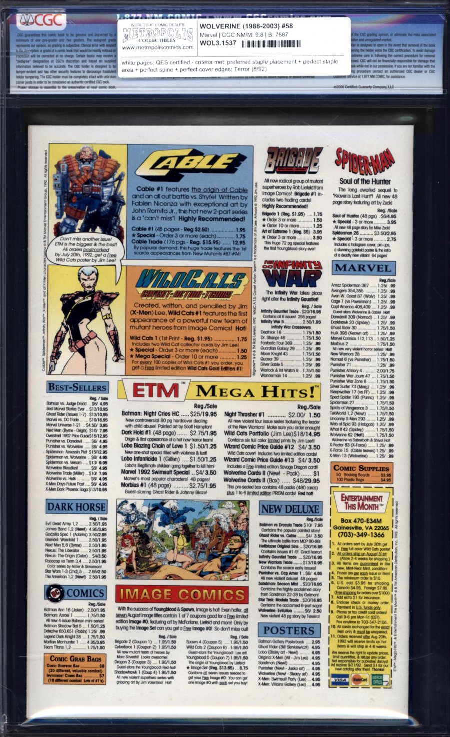 Terror (8/92)Part 1 of 2 - "Monkeywrenching!" Guest-starring Jubilee. Written by D.G. Chichester. Art by Darick Robertson and Joe Rubinstein. In the tragic aftermath of last issue's tragic events, Wolverine and Jubilee hit the road and wind up in Oregon where Wolverine ends up with a spike in his chest!
