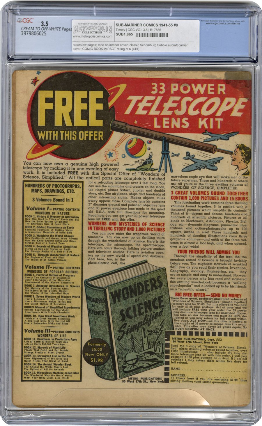 classic Alex Schomburg Sub-Mariner aircraft carrier cover; COMIC BOOK IMPACT rating of 7 (CBI)