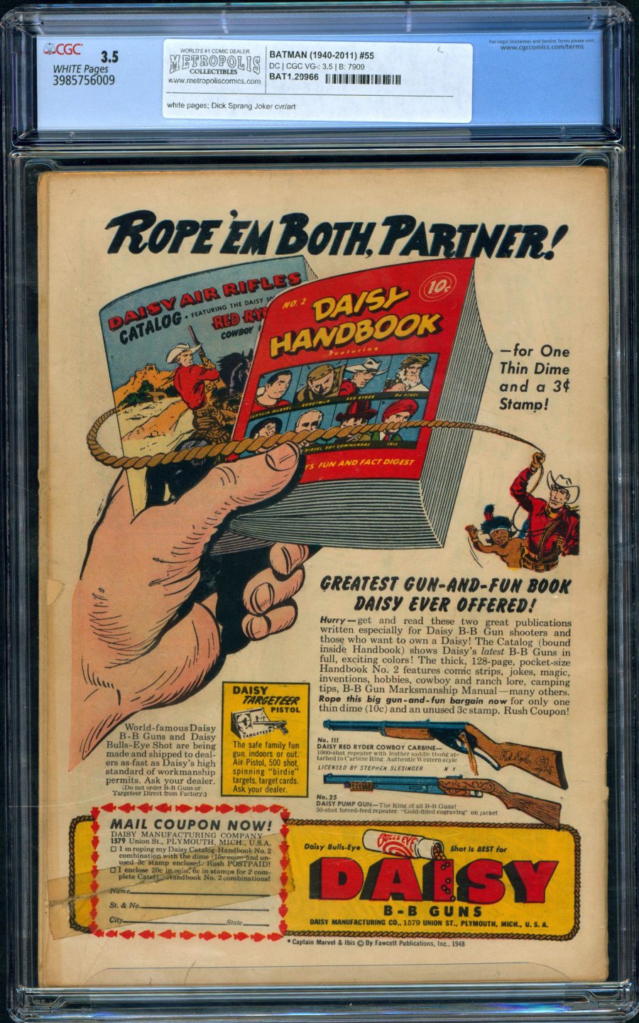 Batman #55 remains a top collectible for "The Case of the 48 Jokers!" — as the Joker realizes his constant clowning is keeping him too busy to commit crimes. He solves this problem by deciding to franchise his criminal identity across all 48 states. This leaves