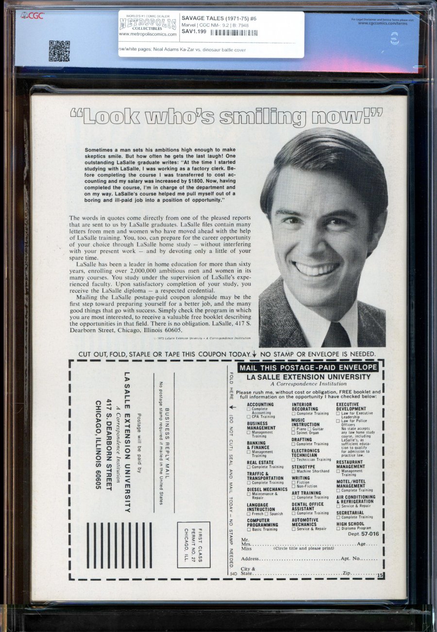 classic Neal Adams Ka-Zar vs. dinosaur battle cover; COMIC BOOK IMPACT rating of 6 (CBI)