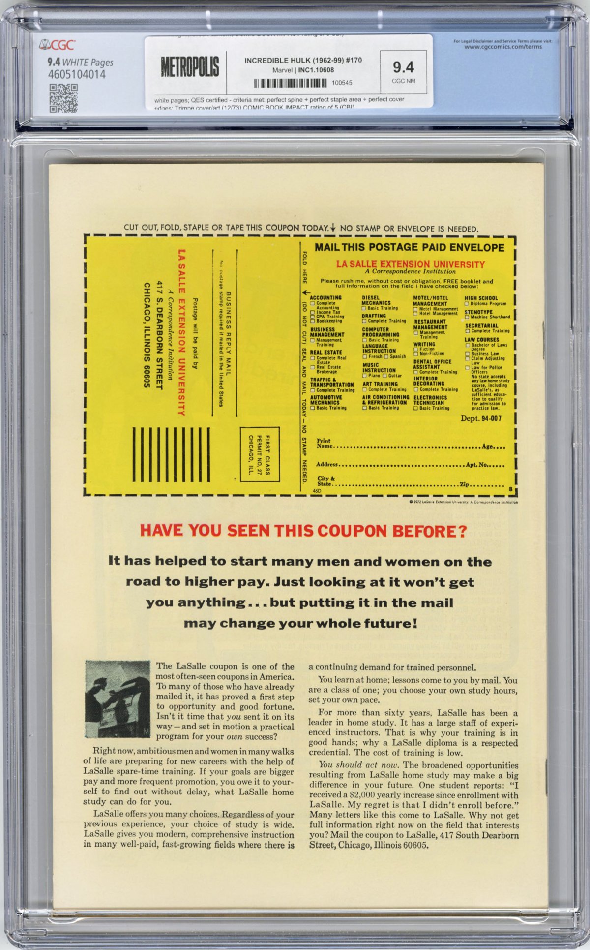 COMMENTS: white pages; QES certified - criteria met: perfect spine + perfect staple area + perfect cover edges