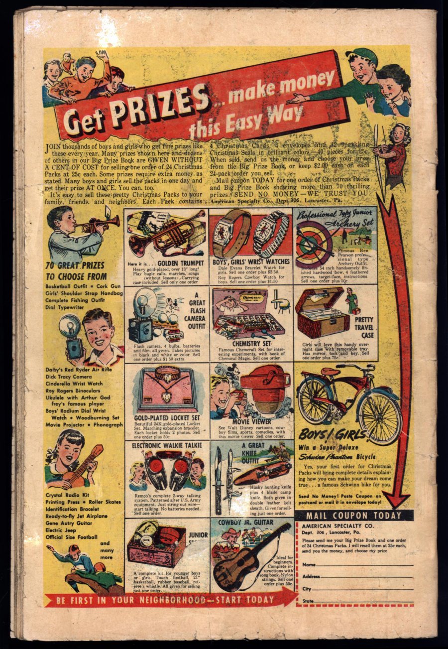 Heath art + classic honey torture cover (12/53) Comic Book Impact rating of 7 (BCI)I bet this poor fellow wishes he could trade places with another Ant-Man right about now because he is about to suffer a fate worse than death on this astonishingly ghastly cover rendered with great skill by Sol Brodsky. As if being buried up to your neck in a cemetery surrounded by skulls of previous victims wasn't bad enough, bring on the honey! Outcome = Not too good! This is a classic and somewhat overlooked pre-code horror cover that is exceedingly hard to find in any condition.