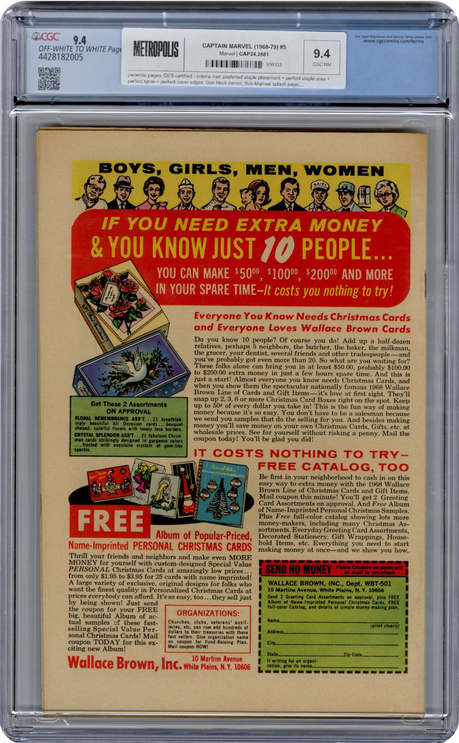 Don Heck cvr/art; Sub-Mariner splash page; (Cap Marvels are sleepers. Buy 'em up now) COMIC BOOK IMPACT rating of 5 (CBI)