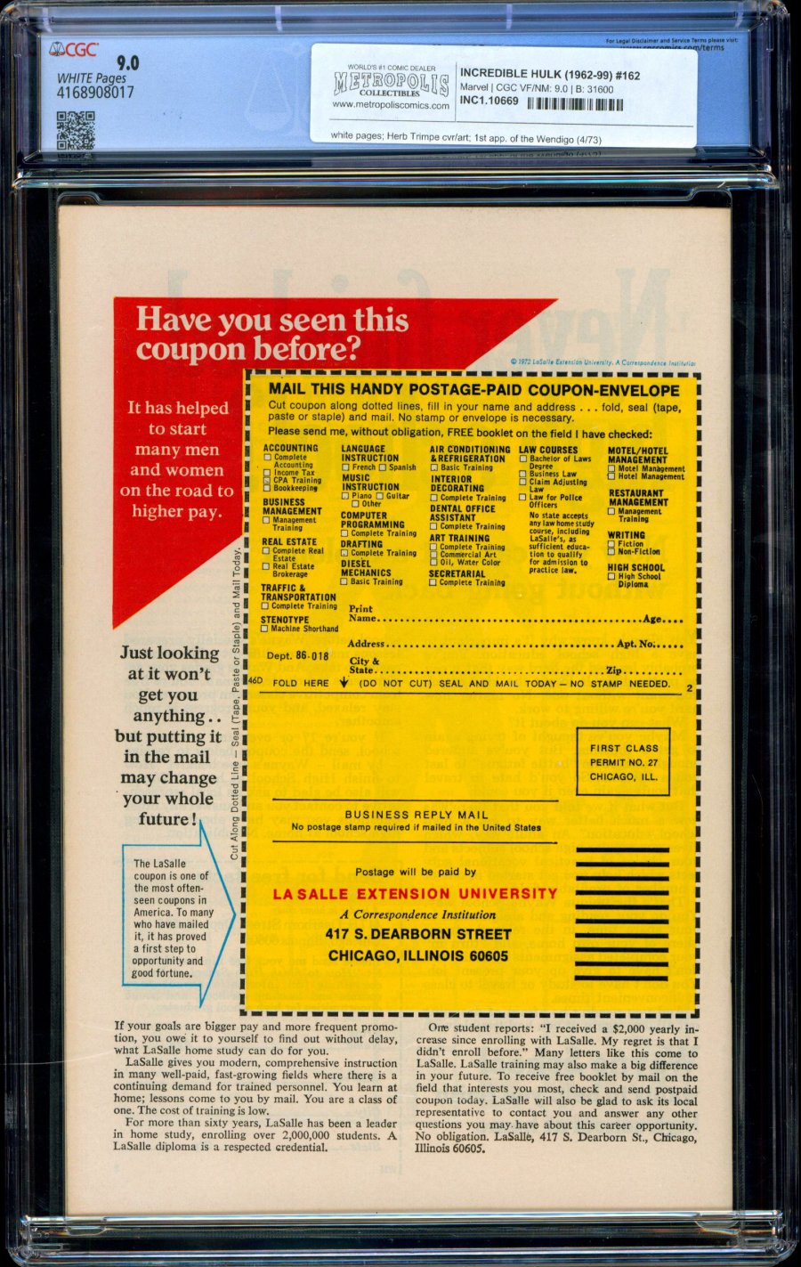 Herb Trimpe cvr/art; 1st app. of the Wendigo (4/73) COMIC BOOK IMPACT rating of 7 (CBI)
