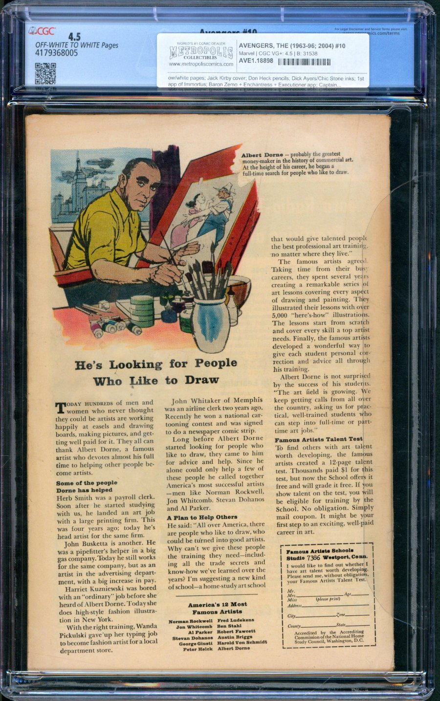 Jack Kirby cover; 1st app of Immortus; Baron Zemo + Enchantress + Executioner app; Captain America pin-up