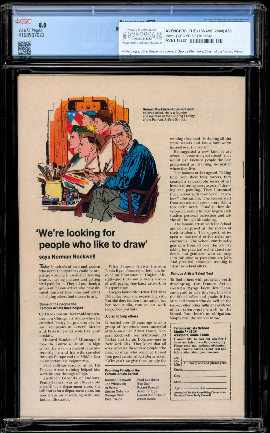 John Buscema cover/art; George Klein inks; Origin of the Vision; Vision joins Avengers.