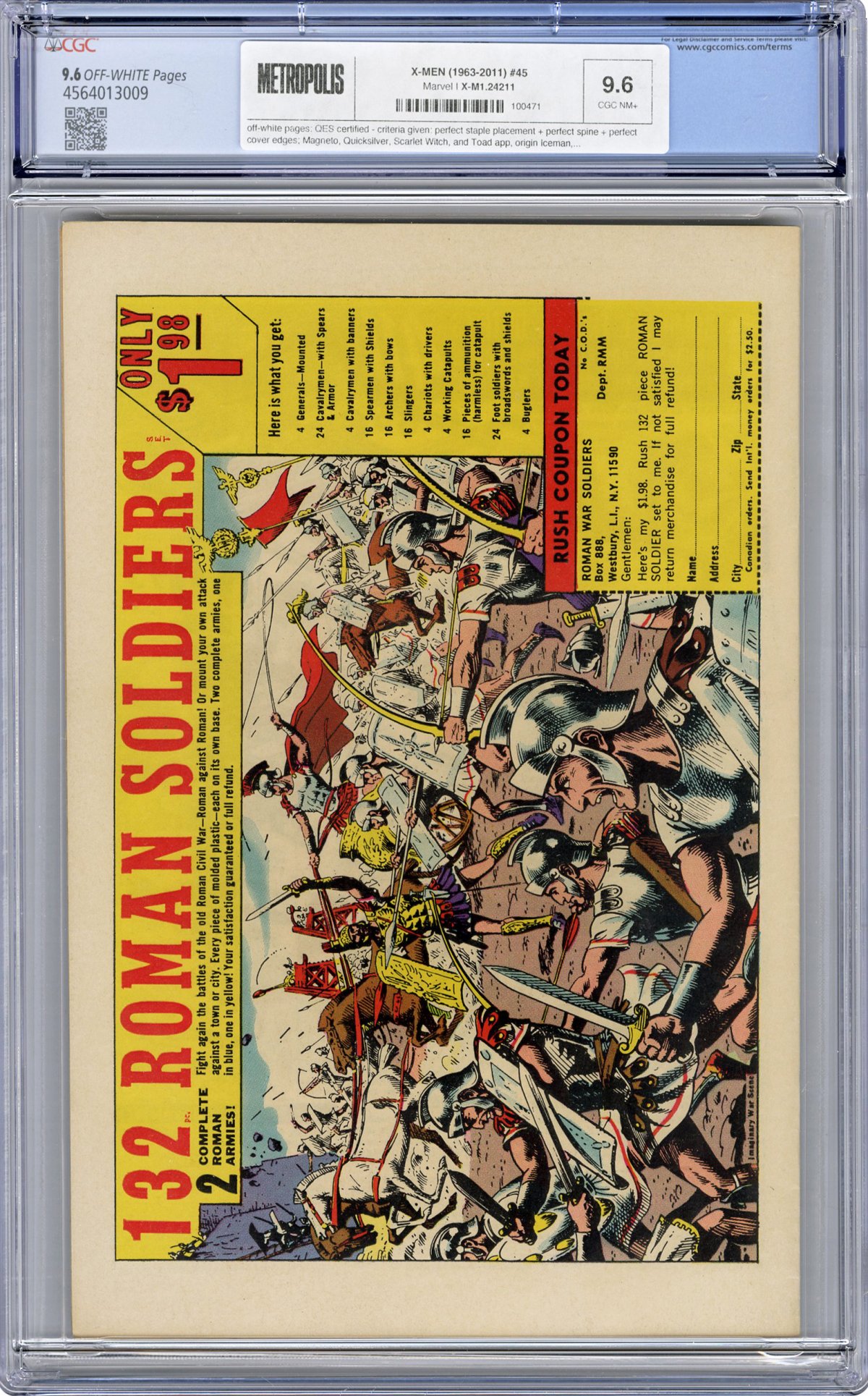 Magneto, Quicksilver, Scarlet Witch, and Toad app, origin Iceman, story cont in Avengers #53; COMIC BOOK IMPACT rating of 6 (CBI)