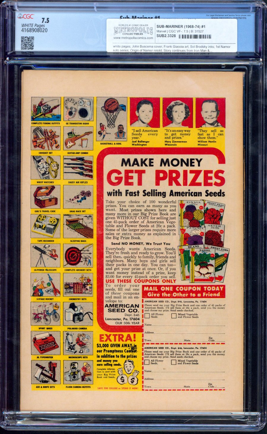 As part of the Silver Age revival, the always ill-tempered Namor was brought back in the pages of the Fantastic Four's top-selling title. Namor was soon headlining his own book with a premiere issue looking back at his long history. Written by Roy Thomas and illustrated by John Buscema and Frank Giacoia, Subby’s Silver Age series would run for 72 issues. Namor would also become a favorite character across the Marvel universe, and continues to be one of the most valued characters of both fans and investors.