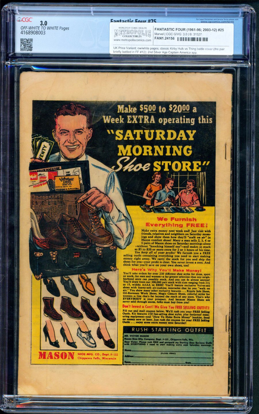 classic Kirby Hulk vs Thing battle cover (the pair briefly battled in FF #12); 2nd Silver Age Captain America app.