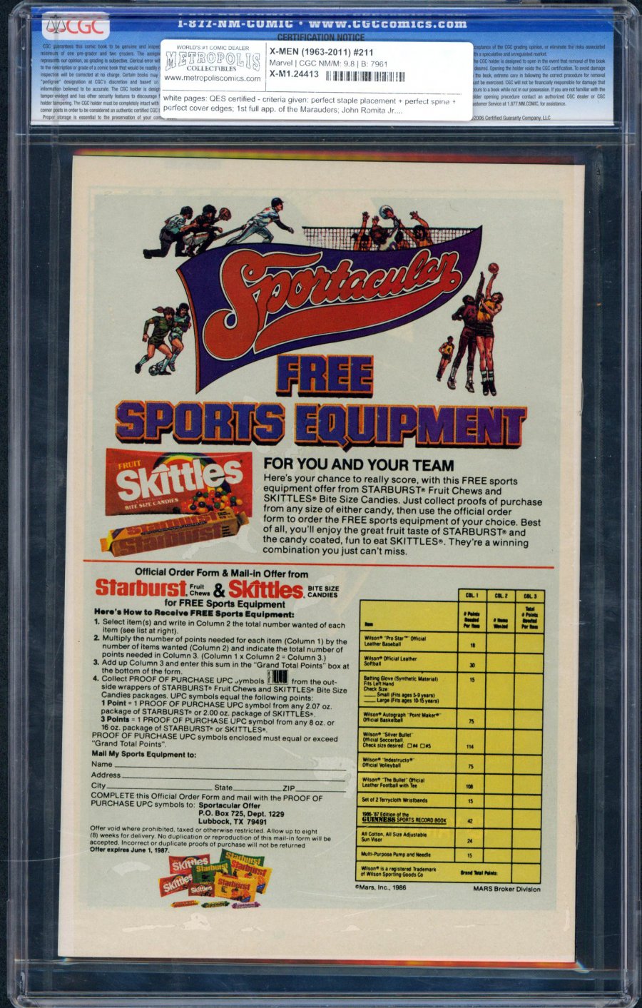 1st full app. Marauders; John Romita Jr. cvr/art; COMIC BOOK IMPACT rating of 6 (CBI)