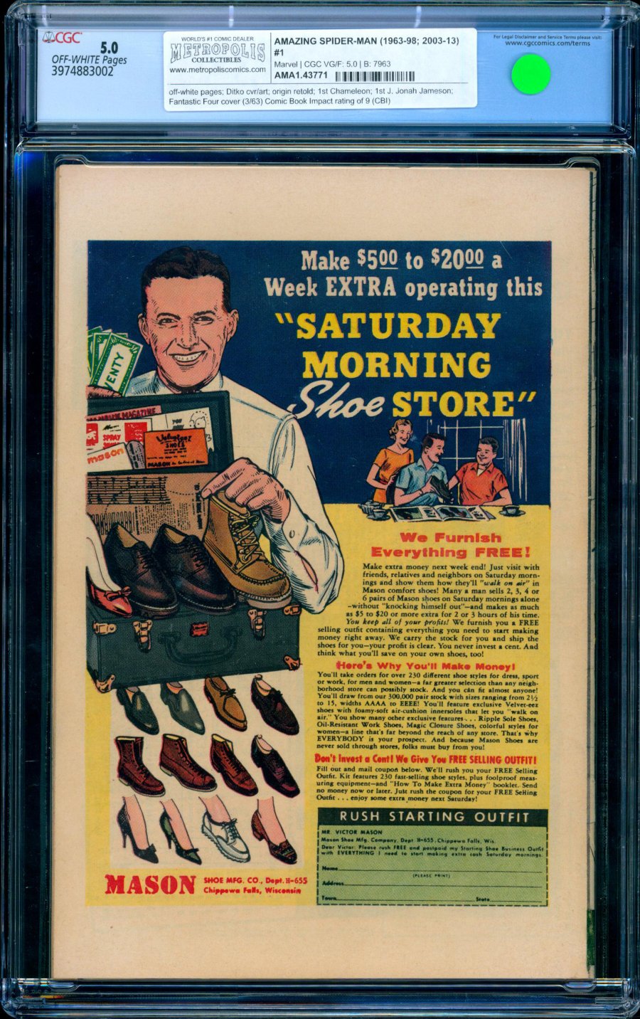 Fantastic Four in their first crossover to bring in new readers.) This first issue has since remained a cornerstone of comic collecting — with co-creators Stan Lee and Steve Ditko bringing in the first appearance of J. Jonah Jameson as one of the most iconic supporting characters in the history of comics. Fans also meet JJJ's astronaut son John, along with seeing The Chameleon's debut as Spidey’s first supervillain.