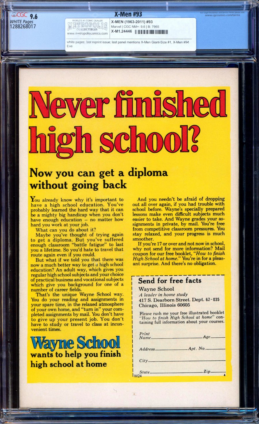 last reprint issue; last panel mentions X-Men Giant-Size #1, X-Men #94 Eve; COMIC BOOK IMPACT rating of 6 (CBI)