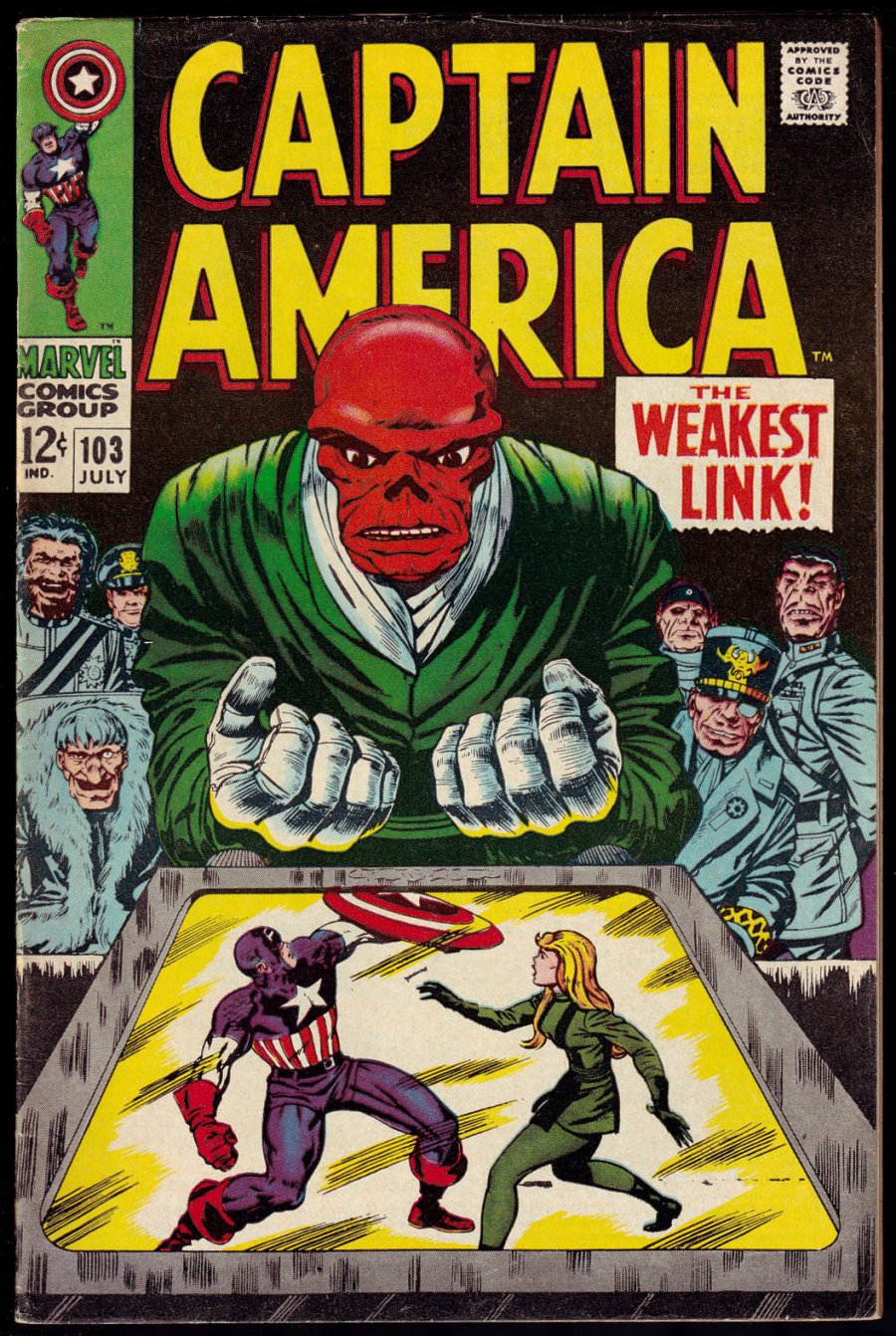 Sharon Carter's name revealed; Jack Kirby cover; Syd Shores inks.